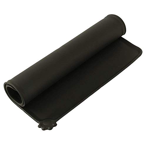 Fablcrew - Tappetino di alimentazione in silicone, per animali da compagnia, anti-fuoriuscite, impermeabile, per cane e gatto, dimensioni: 48,5 x 30 x 0,5 cm, colore: Nero