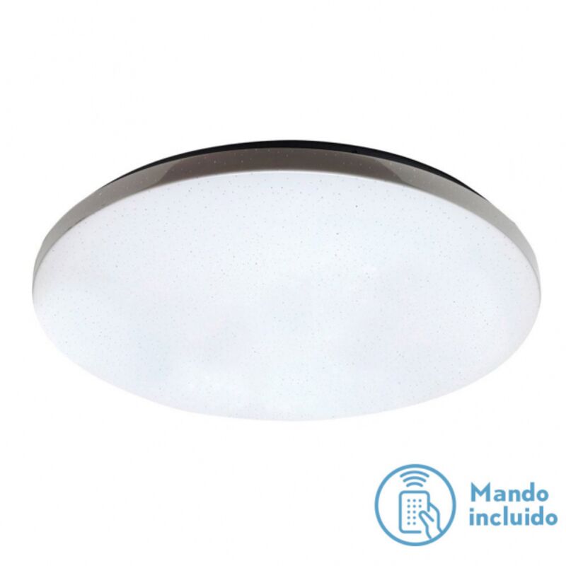 Plafoniera tonda bianca serie Amaranto. È realizzato in policarbonato. Dispone di tecnologia Led integrata con 60 W di potenza, 4200 lumen e colore della luce regolabile in tre temperature di colore (3000°k, 4000°k, 6000°k). Il suo diametro è di 75 cm.