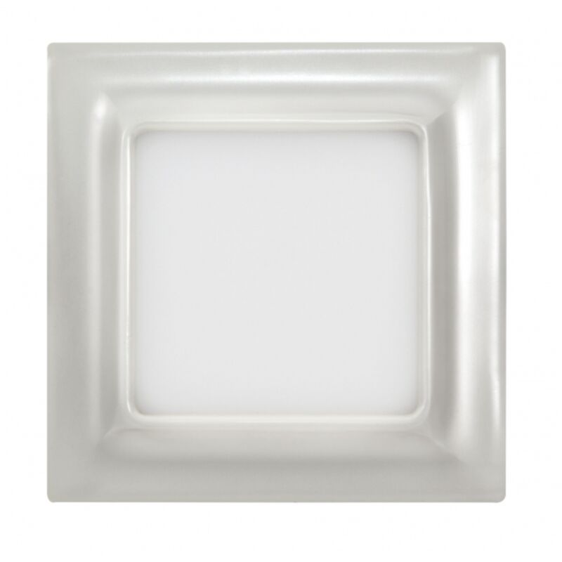 Faretto da incasso modello VENTURA di colore argento perla. Ha una potenza luminosa di 9 watt, 720 lumen e 4000K. La sua misura è 12X12X1,5 centimetri e il taglio è 10,5x10,5 centimetri. Peso netto, 225 grammi.