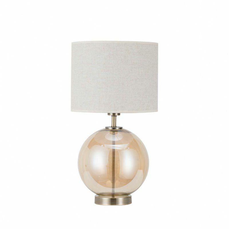 Piano del tavolo in vetro serie Iroko rifinito in AMBRA/PELLE con paralume in materiale tessile beige. Questa scrivania è caratterizzata da un design molto originale ed elegante per decorare e illuminare, donando un tocco sofisticato a qualsiasi ambiente della casa. Le sue dimensioni sono 56X30X30 centimetri. Il portalampada è in E27. Lampadina non inclusa. Modello disponibile anche in colore Fumè/Cromo con paralume Bianco.