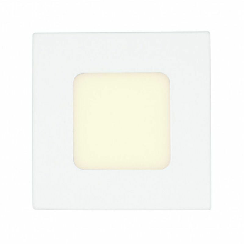Faretto quadrato serie FRANCO realizzato in alluminio bianco. Ha una luce LED da 3 watt, 168 lumen e 3000K, con un angolo di luce di 120°. Le sue misure sono 1x9x9 centimetri e ha un peso netto di 100 grammi.