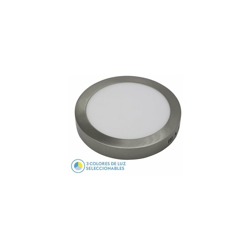 Faro da incasso tondo a plafone della serie DIORITA in colore NICKEL. Realizzato in alluminio e policarbonato, con misure di 3,5x29x29 centimetri. Dispone di LED INTEGRATO con una potenza di 24 watt, 2160 lumen e SELEZIONABILE IN FASE DI MONTAGGIO in TRE TEMPERATURE DI LUCE, 3000-4000-6500K (luce bianca calda, naturale o fredda). In questa serie possiamo trovarli da 18 e 12 watt, con una temperatura di 3000-4000-6500K, e disponibili anche in bianco.
