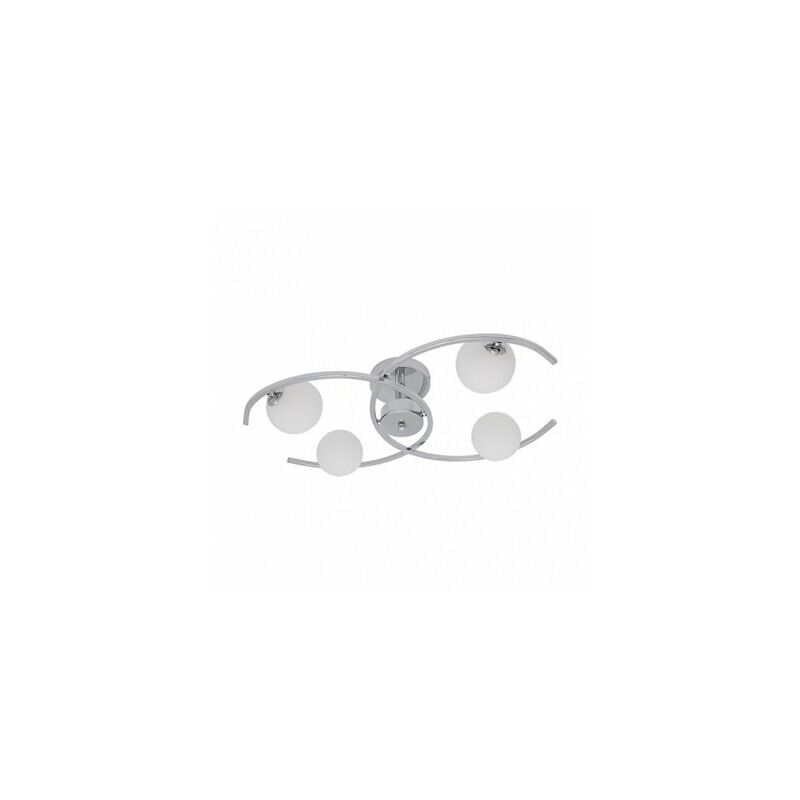 Lampada da soffitto a quattro luci della seriee CONIL, realizzata in metallo CROMATO e paralumi in vetro bianco. Con un corpo dal design moderno, è una composizione molto originale e decorativa. Ideale per soggiorni, camere da letto, ingressi e soggiorni. Dispone di quattro portalampade G9. Lampadine non incluse. Ha una dimensione di 16x58x37 centimetri. In questa serie troviamo le plafoniere a sei, quattro e tre luci, la lampada da parete e la lampada da tavolo abbinata. Combinabile anche con la serie TONGA.