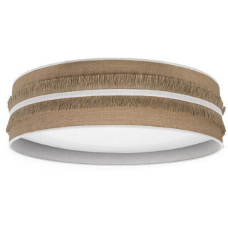 Plafoniera anni 80Serie NATALIA con paralume in tessuto SACO e lino rigato BIANCO. Dispone di TECNOLOGIA LED INTEGRATA con 72 watt di potenza, 5616 lumen e TRE TEMPERATURE SELEZIONABILI DALL'INTERRUTTORE DELLA LUCE (3000°K-4000°K-6500°K), luce calda, bianco neutro e bianco freddo, fornendo così un grande risparmio energetico . La sua originale tonalità cilindrica si distingue per una doppia rifinitura di frange e nastro colorato così come il suo interno, risultando in una serie moderna e altamente decorativa. Ideale per camere da letto, ingressi, soggiorni e salotti, compatibile sia con decorazioni rustiche che classiche o vintage. Ha dimensioni di 13x50x50 centimetri. In questa serie possiamo trovare sospensioni, lampade da tavolo, applique, plafoniere e lampade da terra, tutte combinando il sacco con il lino bianco, arancio, nero, beige o turchese, e con montature in nero, bianco, pelle o nichel.