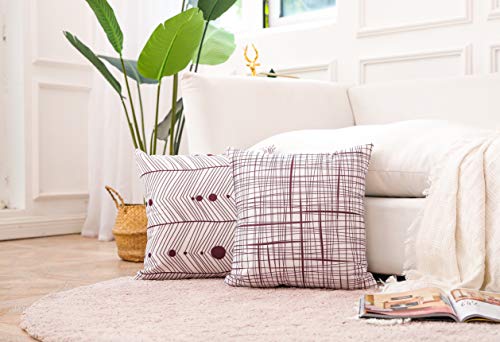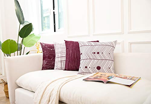 FabThing Federe Cuscini Divano Fodere Cuscini Decorativi Copricuscini Geometria Cotone Moderno per Salotto Letto Casa 45x45cm 4 Pezzi Bordeaux