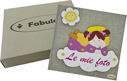 Fabula Angela Nuvoletta - Album Portafoto Formato 20x20 cm - 4 Fogli DIARIO Nascita + 30 Fogli Bianchi per incollaggio Foto - Applicazioni in Legno - cod. 1866n - Copertina Colore 251 Corda