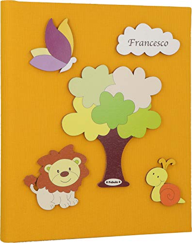 Fabula Linea Foresta - Album Fotografico Diario Nascita Formato 19x25 cm - 28 Pagine - Leone e Albero con Copertina Colore 188 Giallo con Applicazioni in Legno - cod. 941