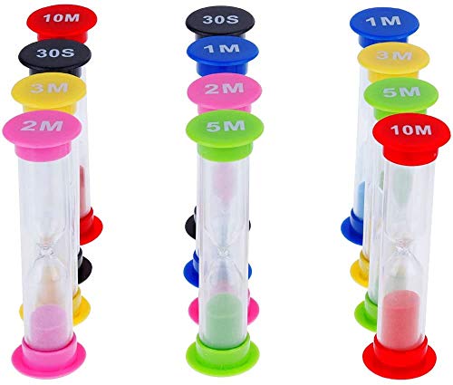 Faburo, Set di 12 clessidre con Sabbia, per i Giochi dei Bambini, per Esercizi, Giochi e Cucina Stock Size