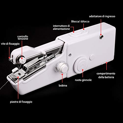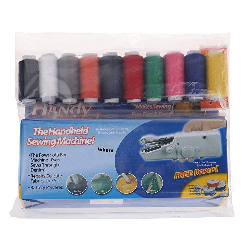 Faburo Macchina da Cucire Portatile con 10 PCS Bobine di Filo,Mini DIY Elettrica Handheld Cordless Strumento di Cucitura Rapida, Casa E Viaggio per Vestiti, Stoffa, Tenda