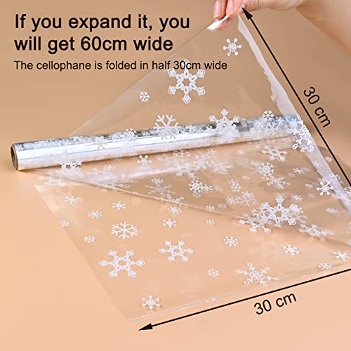 Faburo, 2 rotoli da 4 m x 43 cm, con fiocchi di neve, in cellophane, trasparente