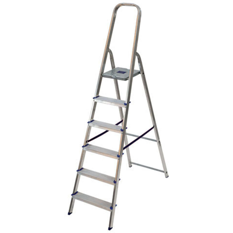 Scala pieghevole Facal Alfa 6 gradini da 1.88m - LF/6 Scala pieghevole con montanti tubolari in alluminio di 42x20 mm nella parte anteriore e di 35x20 mm nella parte posteriore. -Numero gradini: 6 -Profondità gradini: 82 mm -Altezza: 1.88 m -Altezza di lavoro utile: 3.17 m -Peso max: 150 Kg Tipologia: pieghevole Carico supportato (Kg): 150 Gradini: 5 Uso: Fai da te Altezza: 1.88 m