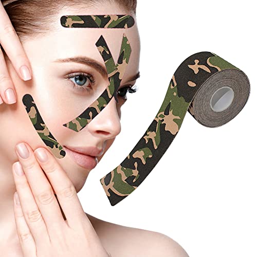 Face Lifting Tape, nastro miofasciale per rassodare il viso, rughe, cerotto antirughe, multifunzione, rassodamento della pelle, per rughe sulla fronte, linee smile, 2,5 cm x 5 m, verde militare