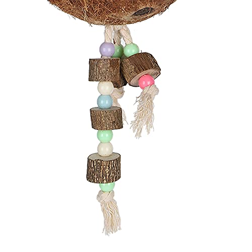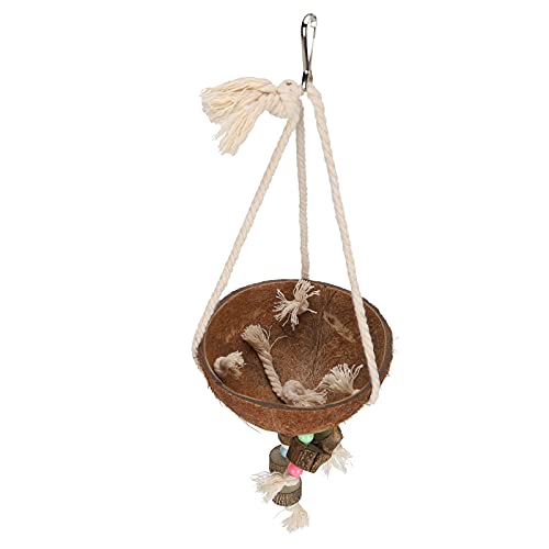 Faceuer Altalena in Guscio di Noce di Cocco per pappagalli, Gabbia per Nido di Uccelli in Cocco per Animali Domestici Gabbia per Appendere Uccelli con Perline Colorate per parrocchetto per canarino