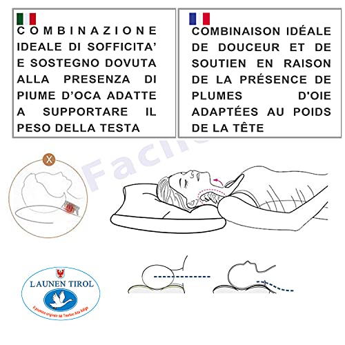 FacilCasa Guanciale in Vera Piuma d'oca, Cuscino Letto LAUNEN TIROL, 100% Piumette Bianche, Lavate, Sterilizzate, Federa Puro Cotone Egiziano, Qualità Marchio Daunex (cm 50X80 h 18) N 1 Rettangolare