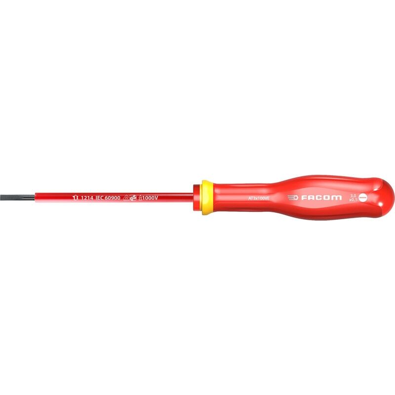 Per la tua sicurezza, ogni cacciavite viene testato individualmente a 10000 Volt per 10 secondi approvato VDE, alla fine del ciclo di produzione. Trattamento termico in linea: + 100% durata e + 100% resistenza. Materiale del manico: impugnatura morbida per un maggiore comfort e ancora resistente agli agenti chimici. Trattamento ''Tri-cotinga'' della lama (zinco-nichel-cromo): 4 volte più resistente alla corrosione. Ergonomia dell'impugnatura ottimizzata: + 10% di coppia. Marcatura laser: per una migliore resistenza all'usura. Lavorazione di incavi tramite controllo numerico: migliore adattamento della vite aumentando il trasferimento della coppia e riducendo l'usura. Lama fresca e: -> 5,5 mm inclusa. Norme: NF ISO 2380-1, NF ISO 2380-2, NF EN 60900, ISO 2380-1, ISO 2380-2, en 60900, DIN ISO 2380-1, DIN ISO 2380-2, DIN EN 60900ASME B107.600. R: 2,5 mm. D: 25 mm. E: 0,4 mm. Lunghezza: 178 mm. L1: 75 mm. L2: 103 mm. L3: 18 mm. Trattamento termico in linea: + 100% durata e + 100%
