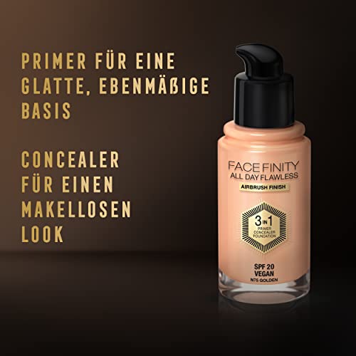 Max Factor Facefinity All Day Flawless 3in1 - Fondotinta Liquido a Lunga Durata, 75 Golden, 30 ml