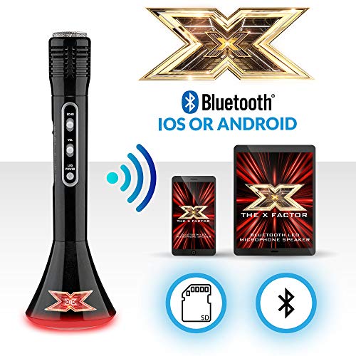 The X Factor- Karaoke-Altoparlante Microfono con Bluetooth, luci LED e Funzione Eco XF1, Colore Nero, L25.5X H8x W8cm, TY6012