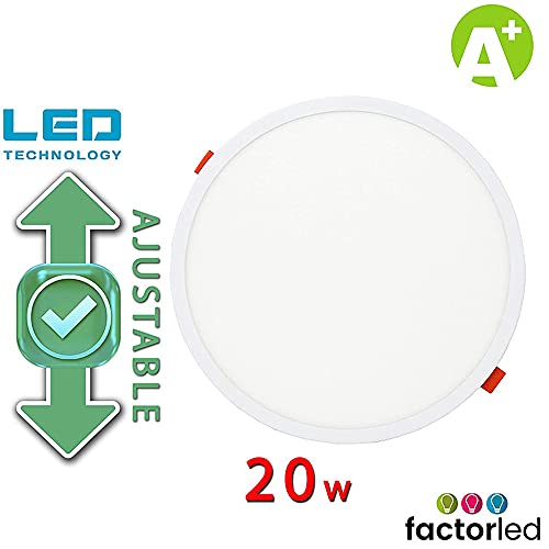 Factorled Placchetta LED circolare 20W, Downlight rotonda, lampada da soffitto, pannello da incasso, diametro regolabile da 50mm a 210mm, illuminazione per interni, driver inclusi Luce fredda (6000K)