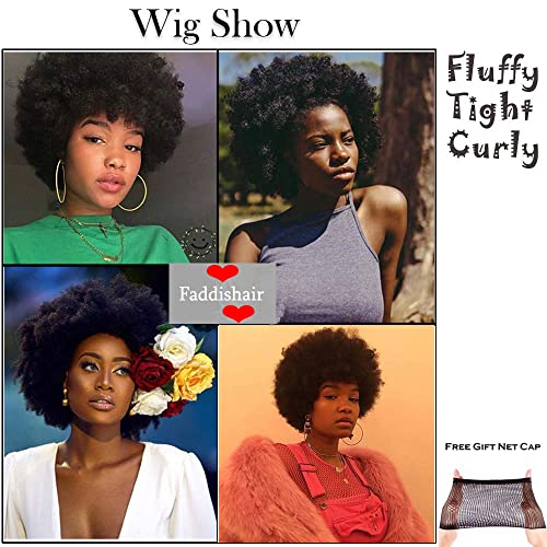 Faddishair Parrucche afro ricci per donne nere Parrucche brasiliane di capelli umani di Remy resistenti al calore (8 pollici soffici ricci stretti # 1B)