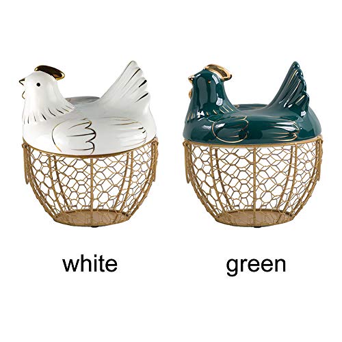 Faderr - Cestino per uova in ceramica con design a gallina, porta uova, porta uova, a forma di pollo, per organizzare e visualizzare uova fresche (verde)
