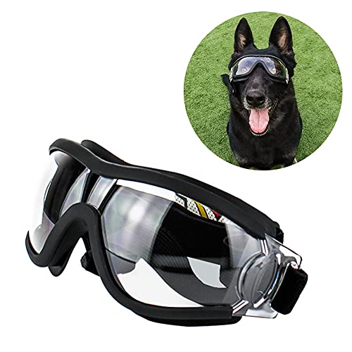 Faderr Occhiali da sole trasparenti per cani e animali domestici, impermeabili, antivento, protezione per gli occhi per cani di taglia grande/media (nero e trasparente)