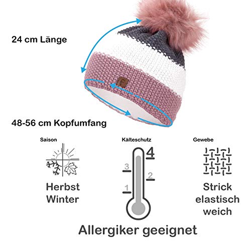 Faera Berretto Invernale Foderato Caldo con Pelliccia Sintetica Berretto con Pompon Fodera in Pile Berretto Invernale Lavorato a Maglia Cappuccio Donna Uomo Taglia Unica, Colore:Rosato