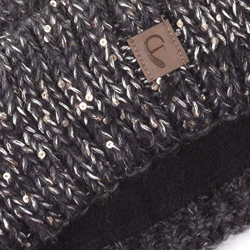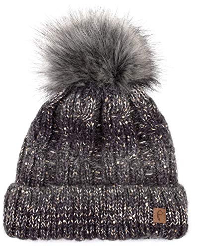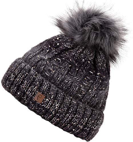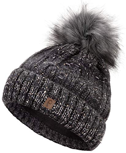 Faera Berretto Invernale Foderato Caldo con Pelliccia Sintetica Berretto con Pompon Fodera in Pile Berretto Invernale Lavorato a Maglia Cappuccio Donna Uomo Taglia Unica, Colore:Nero