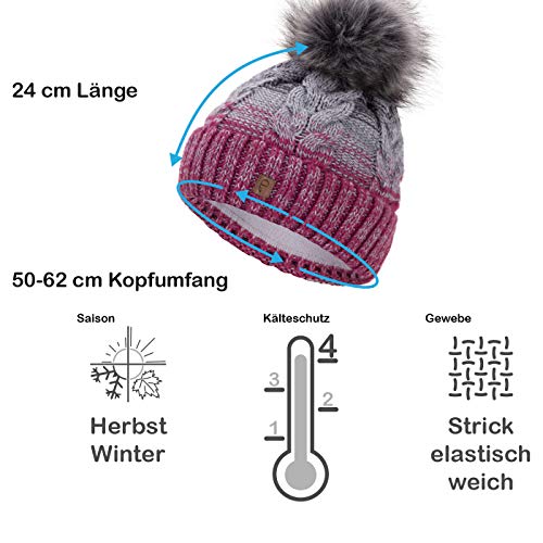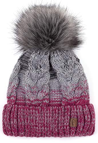 Faera Berretto Invernale Foderato Caldo con Pelliccia Sintetica Berretto con Pompon Fodera in Pile Berretto Invernale Lavorato a Maglia Cappuccio Donna Uomo Taglia Unica, Colore:Viola