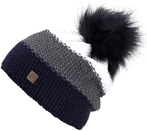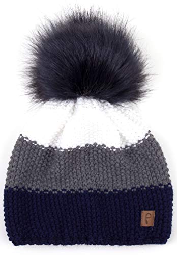 Faera Berretto Invernale Foderato Caldo con Pelliccia Sintetica Berretto con Pompon Fodera in Pile Berretto Invernale Lavorato a Maglia Cappuccio Donna Uomo Taglia Unica, Colore:Blu Marino