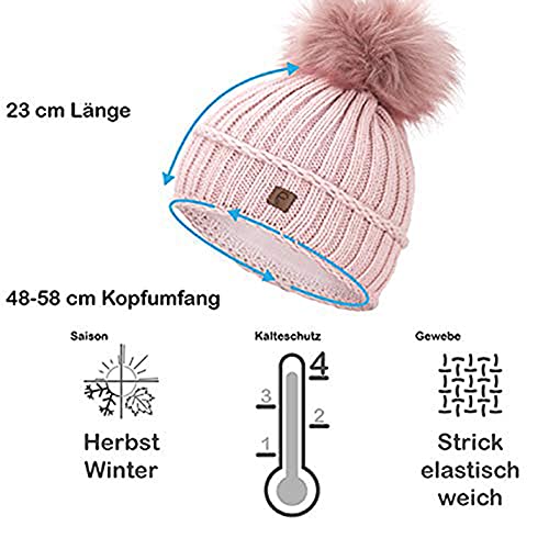 Faera Berretto Invernale Foderato Caldo con Pelliccia Sintetica Berretto con Pompon Fodera in Pile Berretto Invernale Lavorato a Maglia Cappuccio Donna Uomo Taglia Unica, Colore:Rosato