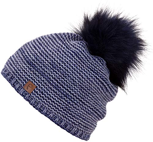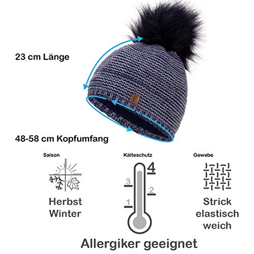 Faera Berretto Invernale Foderato Caldo con Pelliccia Sintetica Berretto con Pompon Fodera in Pile Berretto Invernale Lavorato a Maglia Cappuccio Donna Uomo Taglia Unica, Colore:Blu Scuro
