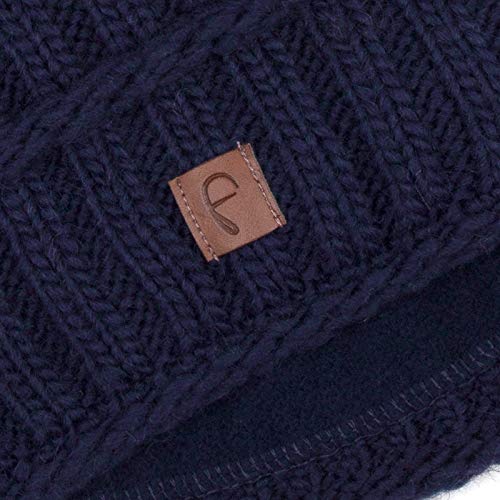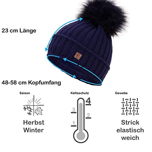 Faera Berretto Invernale Foderato Caldo con Pelliccia Sintetica Berretto con Pompon Fodera in Pile Berretto Invernale Lavorato a Maglia Cappuccio Donna Uomo Taglia Unica, Colore:Blu Marino
