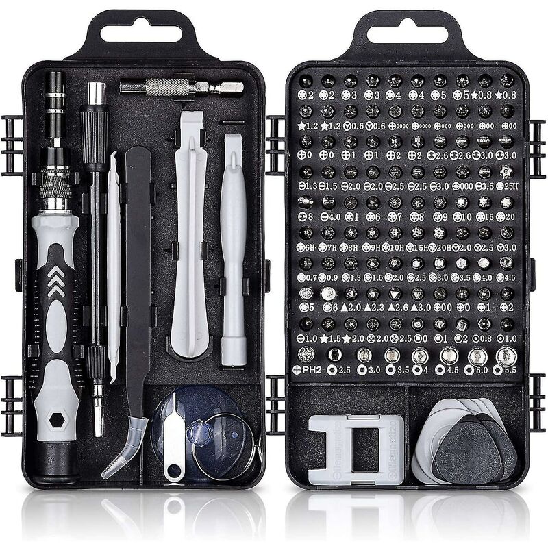 Set di cacciaviti recentemente aggiornato: questo set di cacciaviti è uno strumento di riparazione ideale, le punte sono state estese a 98 pezzi e contiene molti strumenti di apertura e riparazione per dispositivi elettronici, PC, computer, iPhone, tablet, iPad, laptop, orologi, ecc. Punta per cacciavite ad alta durezza e precisione:: Questo set di cacciaviti contiene molte punte per cacciaviti comuni e speciali, il materiale è CRV e temprato 55-60 HRC e rivestito in nichel. Nuova impugnatura:: L'impugnatura è allargata e dotata di materiale in silicone, ergonomico e antiscivolo. La punta del set di cacciaviti è magnetica, può essere estesa di 24 cm e piegata a 360 gradi. Posizionamento professionale e portatile:: Tutti i bit sono in una robusta mini scatola in PP e ognuno ha la sua posizione, può apribile da entrambi i lati.Il mini set di cacciaviti meccanici di precisione può essere riposto in tasca."