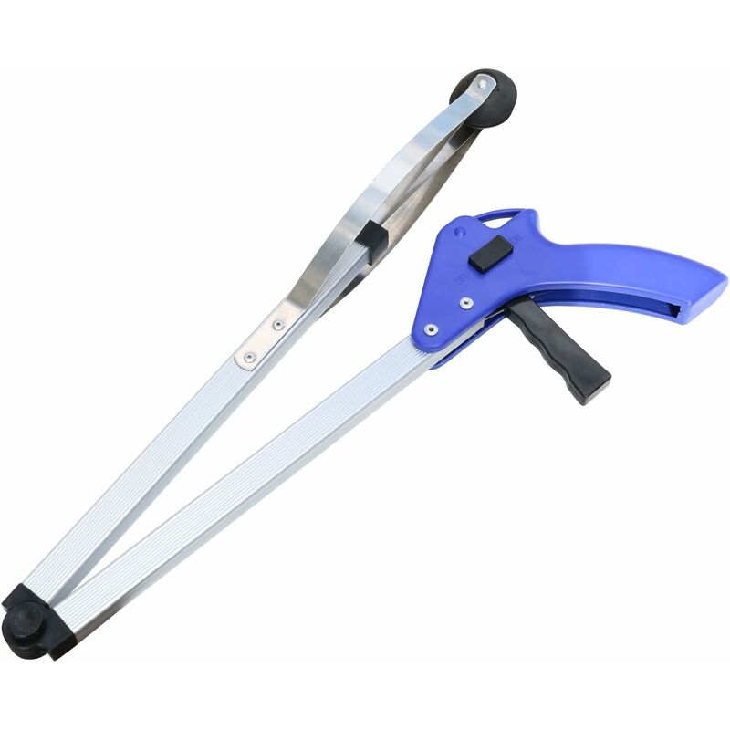 Dispositivo di raccolta lungo 26"/66 cm, si piega a metà per riporlo facilmente Un'estensione del braccio per facilitare la raccolta di oggetti sul pavimento Coppe in gomma morbida all'estremità, per sollevare oggetti oggetti delicati Il raccoglitore si apre a 9 cm Chiusura laterale per tenere gli oggetti in mano senza dover impugnare la leva