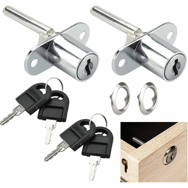 Lts Fafa - Serratura per cassetti da ufficio con chiavi Serratura a cilindro in lega di zinco per armadietto Piedistallo per ufficio in legno a 2 cassetti (foro chiave 16 mm)