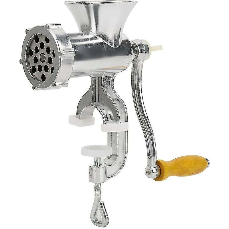 Tritacarne manuale, dotato di manico lungo, ergonomico, comodo da impugnare e che fa risparmiare tempo e fatica. Utensili da cucina perfetti, di pregevole fattura e lama incisiva, possono aiutarti a preparare piatti deliziosi velocemente. Adatto per macinare carne di maiale, manzo, agnello, pollo, spezie varie, pepe, ecc. e la produzione di salsicce e pasta. Realizzato in lega di alluminio di alta qualità, sano e non tossico, resistente e facile da pulire. Dotato di uscita ad arco, la carne è fine e liscia, e il gusto è morbido, adatto alla cucina casalinga.Numero di pezzi consegnati: 1Colore: argentoMisura: 17*20cm