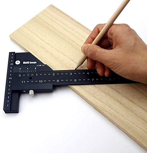 Fafeicy Righello a T per La Lavorazione del Legno, Regolabile di Precisione Righello Attrezzi Righello per Tracciare La Misura del Legno in Lega