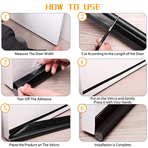 Faffooz 96 cm Guarnizione Porta Inferiore Antirumore Paraspifferi Porta Guarnizione Sottoporta Antispifferi Antivento Antirumore per Porta Universale Tagliabile Montaggio Adesivo Semplice(black)