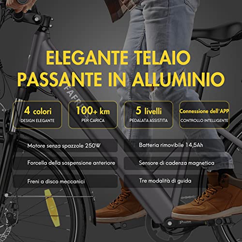 Fafrees Bici Elettrica con APP, 27.5" Bicicletta Elettrica Uomo, 36V 14.5Ah Ebike Donna 100KM Pedalata Assistita, 250W Bici Elettriche da Città, Shimano 7 Velocità, Official F28 Pro 2023 Nero