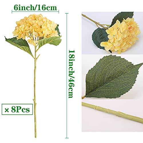 FagusHome 8 Pz Fiore di Ortensia Artificiale con Steli Fiori Artificiali Fiori Finti per Bouquet per la Decorazione (Giallo)