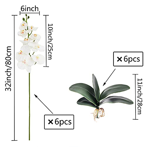 FagusHome 6 Pz Fiori Orchidea Phalaenopsis Fiori Artificiali 80cm con 6 Pz Foglie d'orchidea phalaenopsis Artificiale Fiori Finti