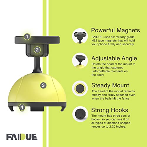 FAIDUE - Supporto telefono per campo da tennis - Supporto magnetico smartphone per Giocatori di Tennis - Registra partite e allenamenti di Tennis per migliorare e condividere sui social
