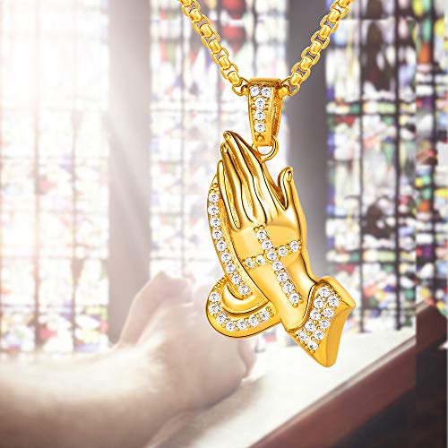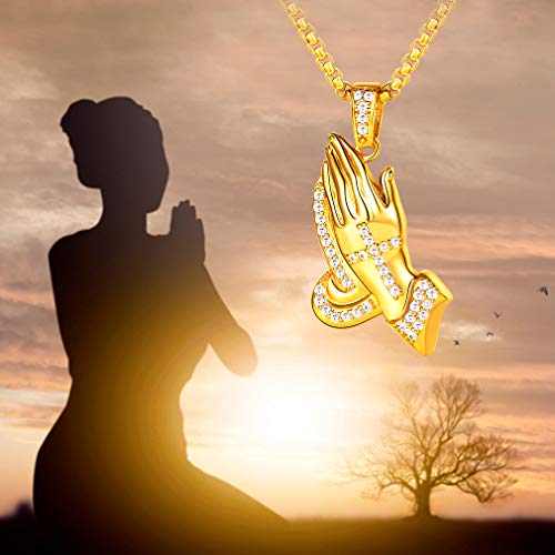 FaihtHeart Collana Ciondolo Mani di Preghiera Gioielli Religiosi con Scritta da Donna Uomo in Argento Nero Oro Blu Oro Rosa Regali Creativi Compleanno Design Classico