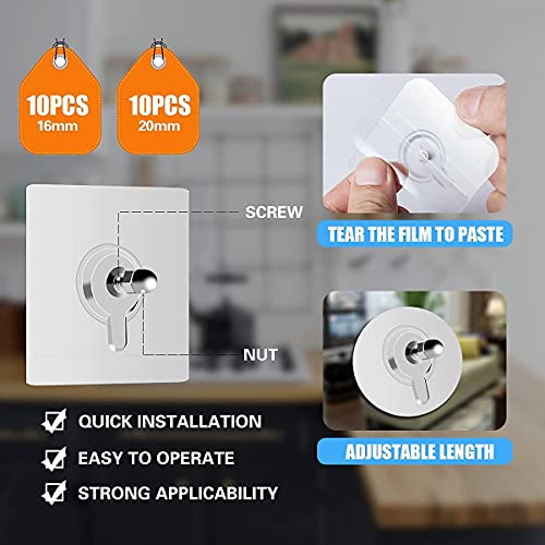 【Promemoria】 Riceverai 20 gancio autoadesivo bagno Ci sono due dimensioni tra cui scegliere, 10 pezzi sono 16 mm e 10 pezzi sono 22 mm, per un'esperienza migliore, si consiglia di appendere oggetti pesanti per 24 ore dopo l'incollaggio.