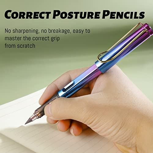 2. 【Con Gomma】 Questa matita perpetua con punta ha una gomma all'interno del fusto, progettata in modo intelligente per risparmiare spazio. Basta svitare la canna per rimuovere la gomma all'interno. Queste matita eterna grafite sono disponibili in 5 colori diversi e sono eleganti e sofisticate.