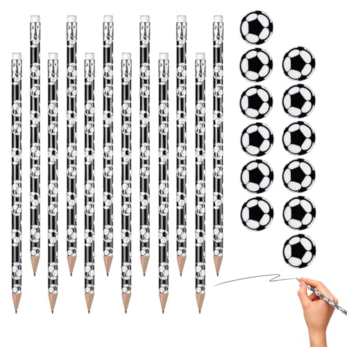 ⚽[Pratico]:Le matite da calcio HB non si rompono facilmente, scrivono in modo fluido e chiaro e non graffiano la carta, meno probabilità di macchiare i libri di lavoro e le mani, La gomme da cancellare calcio rimuove rapidamente gli errori e può essere utilizzata per il disegno, gli esami, i compiti e altro ancora.