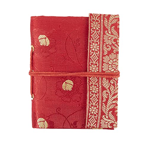 Fair Trade Block notes ricoperto in tessuto sari 80 x 105 mm mini rosso