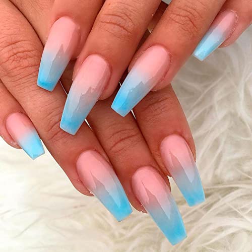 Fairvir Coffin - Unghie finte lunghe e finte sfumate, colore: arancione