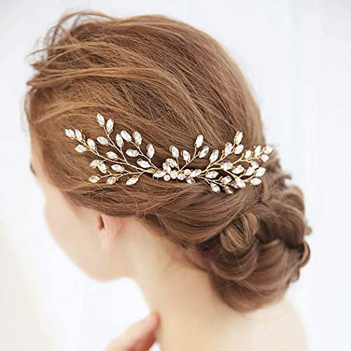 Fairvir Pettine per capelli da sposa in argento con strass luccicanti, accessori per capelli da sposa per donne e ragazze (oro)