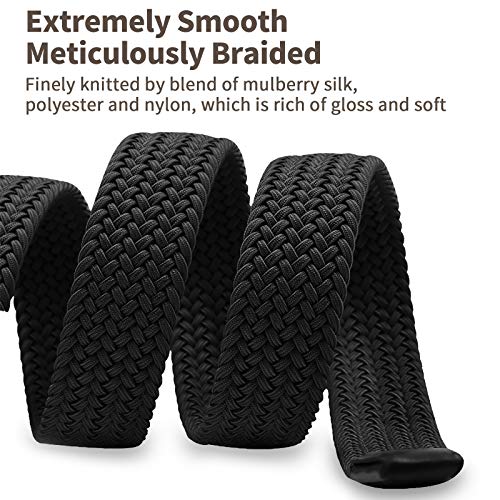 ✔ 【Materie Prime Sicure】Scegliamo le miscele di 60% seta di gelso e 40% poliestere come tessuto principale della cintura elastica, che è ricca di elasticità e traspirante, ha una tattilità regolare e dimostra la sua qualità distintiva e squisita diversa dalle altre cintura intrecciata uomo.